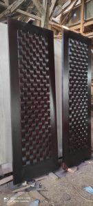 Pintu Kayu solid motif anyaman menggabungkan estetika tradisional dengan fungsi modern.